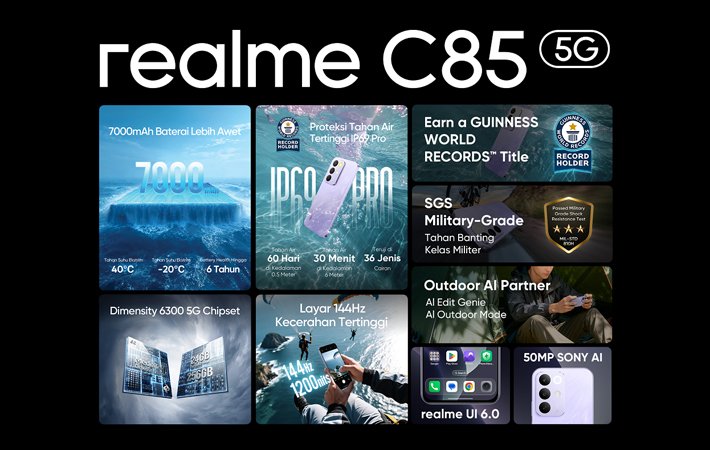 realme C85 5G resmi dirilis sebagai solusi produktivitas di tahun 2026 dengan keunggulan utama di sektor koneksi 5G dan daya tahan baterai.